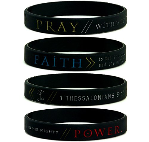 -. Feature : Pack of 6 silicone bracelets, engraved with Bible verses on the themes of faith, power, & prayer / Standard adult unisex size of 8" around is suitable for both him and her / Includes 2 each of HEBREWS 11:1 - Faith is the substance of things hoped for, and the evidence of things not seen. / Includes 2 each of EPHESIANS 6:10 - Be strong in the Lord and in his mighty power. / Includes 2 each of 1 THESSALONIANS 5:17 - Pray without ceasing.