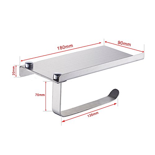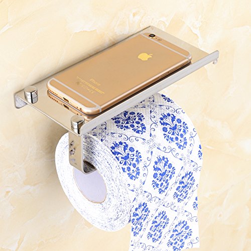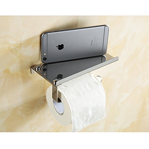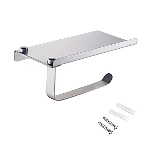 Stainless Steel Toilet Paper Holder Wall Mounted Bathroom Tissue Holder with Mobile Phone Storage Shelf Hardware Pack Included