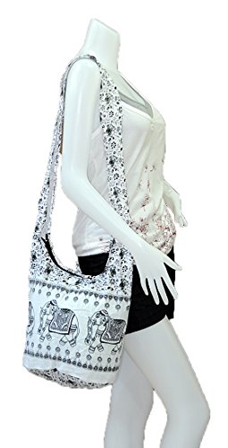 Thai Hippie Hobo Sling Crossbody Shoulder Bag Purse Handmade Zip Colorful Ethnic Elephant Cotton Gypsy Boho Messenger Medium