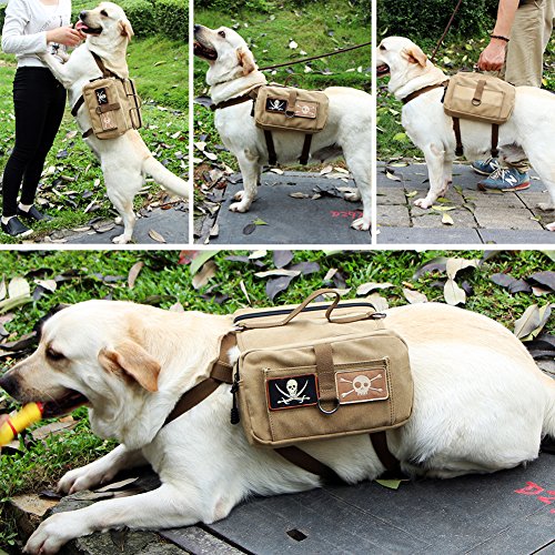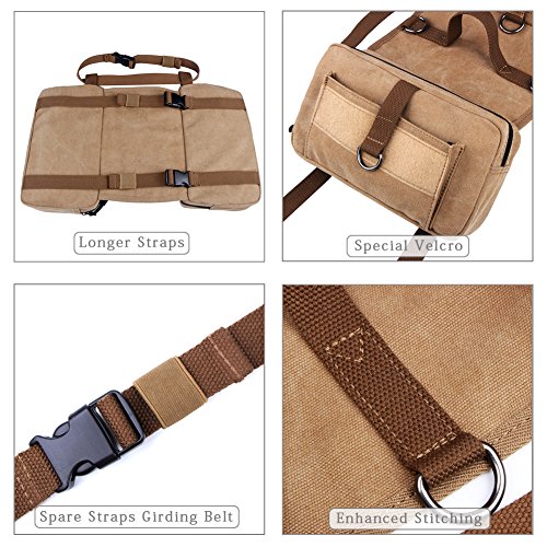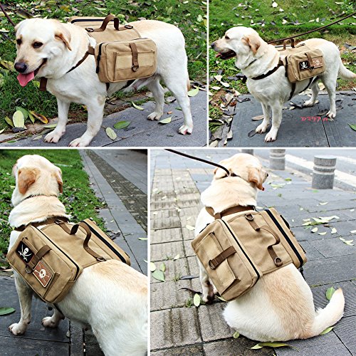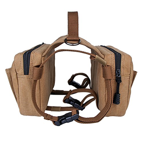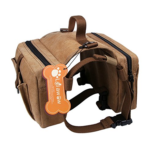Lalawow Dog Pack Harness Canvas Saddle Bag For Outdoor Travel Training Camping Hiking
