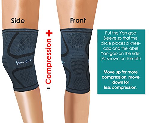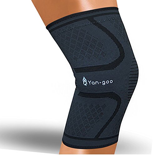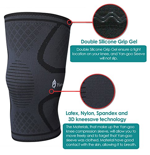 Yan-goo Knee Compression Sleeve Brace with Silicone Grip Gel, Best Support for Running, Training, Sports, Arthritis, Fitness, Meniscus Tear, Crossfit, Basketball & more Single Wrap