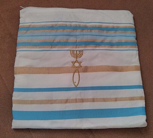 - Light Blue and Gold Grafted In Messianic Tallit Talit Prayer Shawl 22"x72" with matching Bag by Zuluf