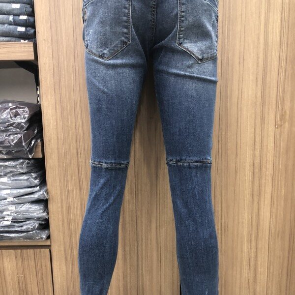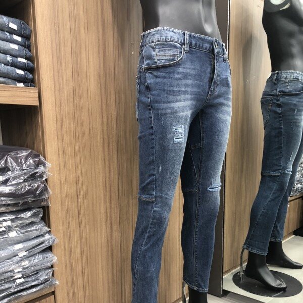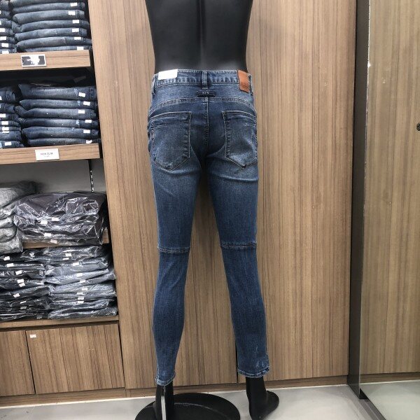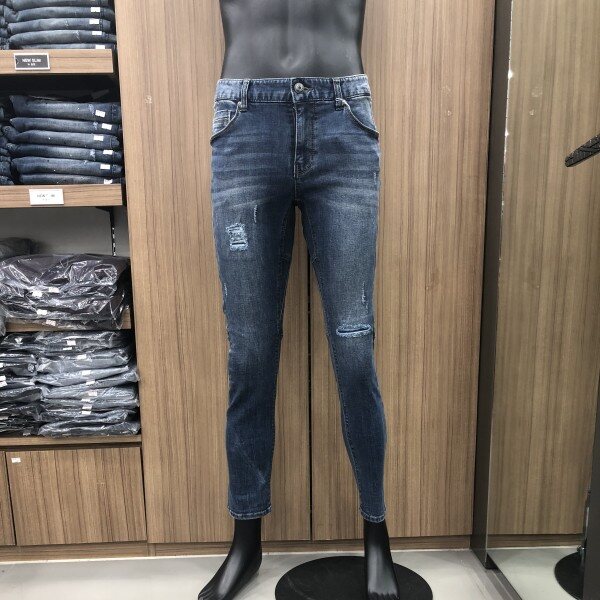 강한 워싱디테일과 미디움인디고 컬러의 데님으로 라인에 변형을 주어 입체적이고 트렌디한 느낌을 강조한 디자인