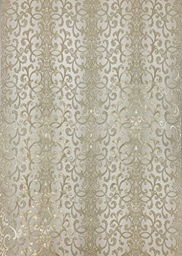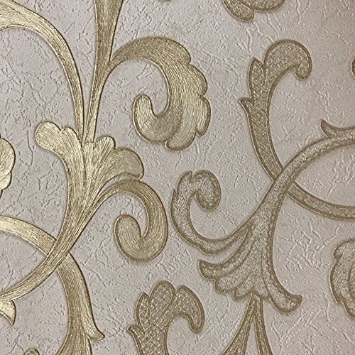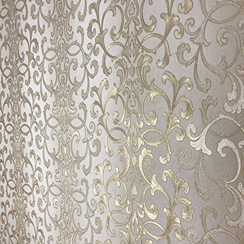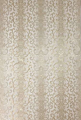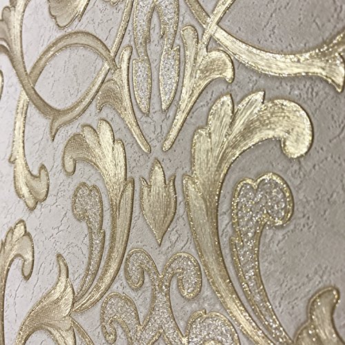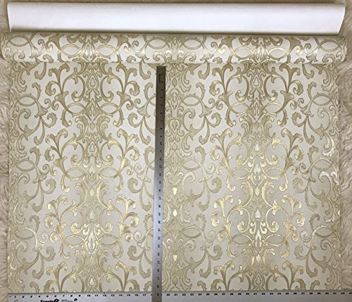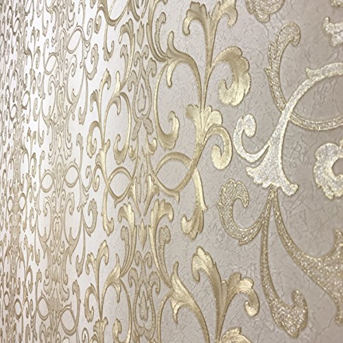 -. Title : Embossed modern Slavyanski wallcovering roll victorian pattern Vinyl Non-Woven Wallpaper ivory white silver sparkles gold metallic textured stripes wall decor 3D damask paste the wall only vintage stl