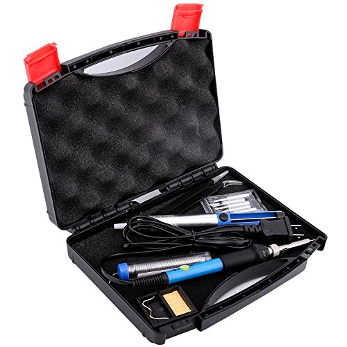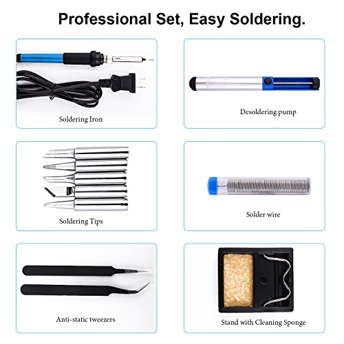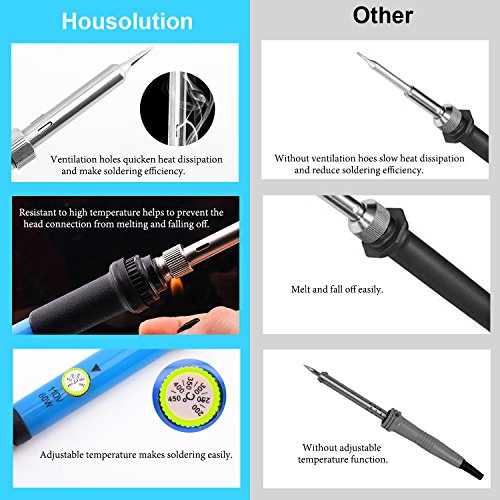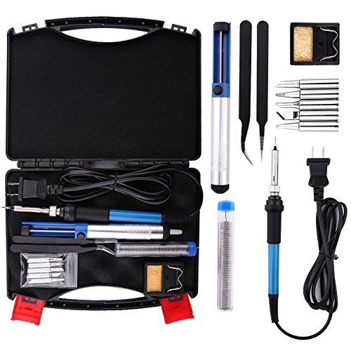 Electric Soldering Iron Kit - Housolution 60W 110V Temperature Controller Welding Tool Outdoor Portable Repair Tool Handle DIY Kit with Carry Case, 5pcs Tips, Desoldering Pump, Stand, Tweezers (Black)