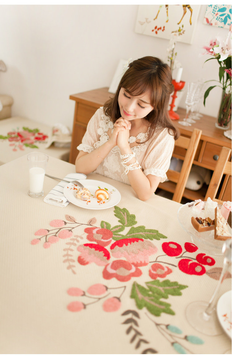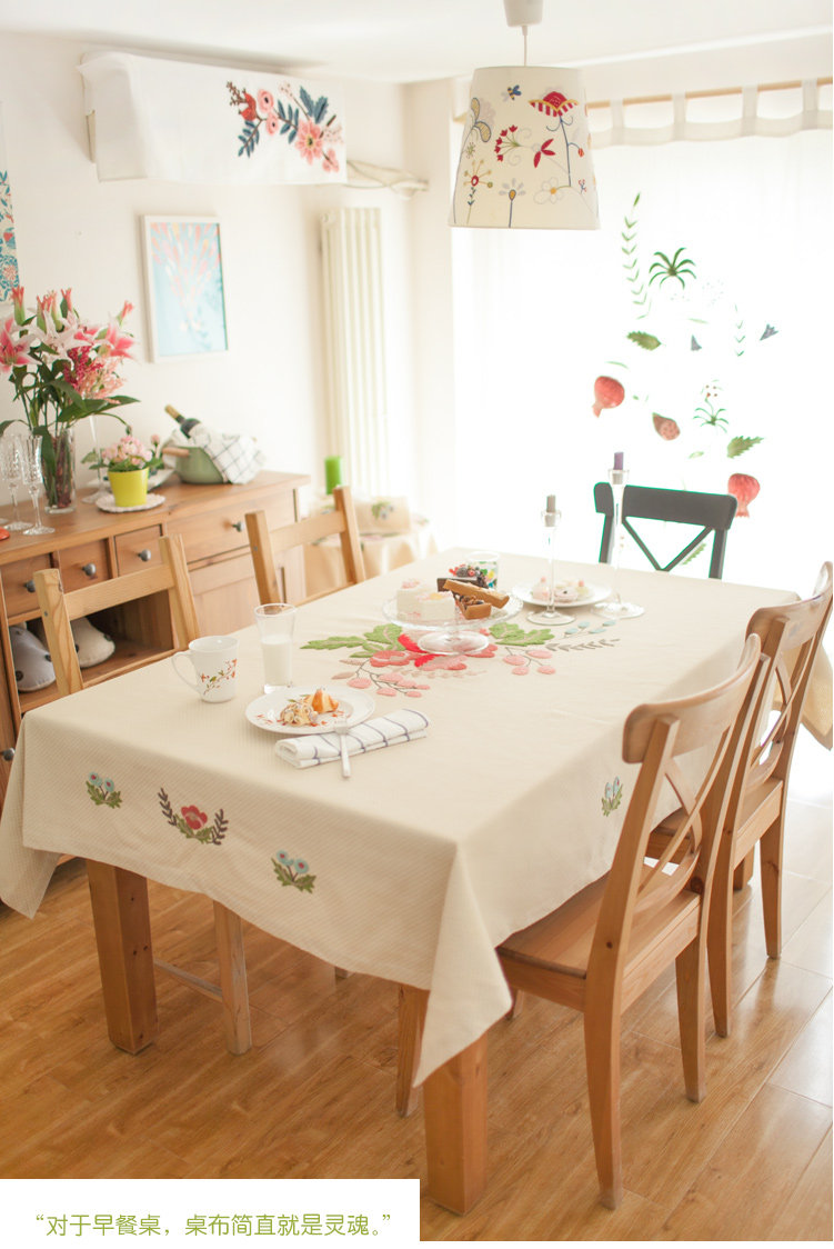 你也许是简约派,只爱纯白,但这时不妨放宽一次原则,试试彩色的绣花桌布;