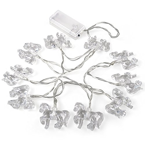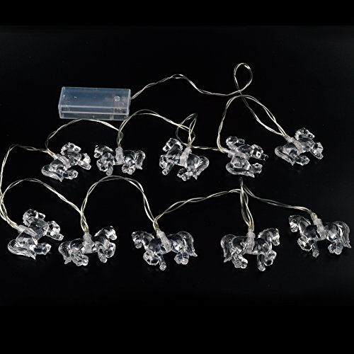 LEDHOLYT 1.65M 10 LEDs Battery Powered Flamingo Horse String Light for Outdoor Indoor Christmas Festival Decoration (White)