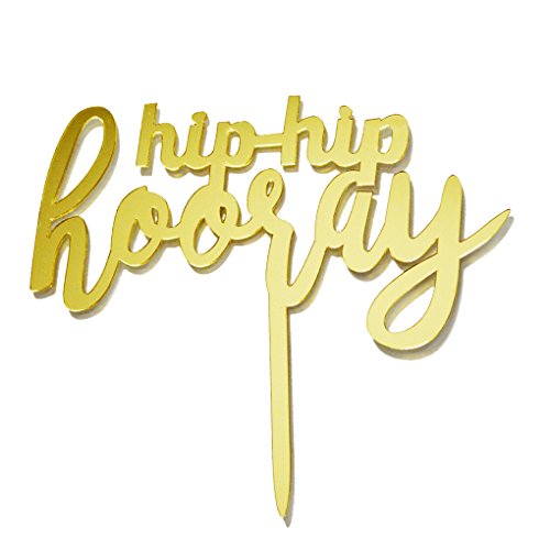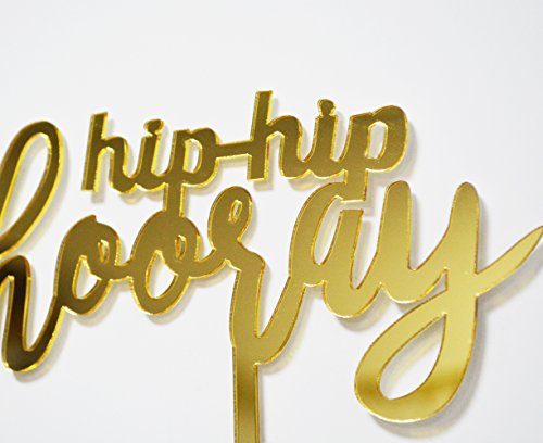 Firefairy Hip Hip Hooray Cake Topper, Birthday Graduation Wedding Retirement Engagement Party Decorations(Gold)