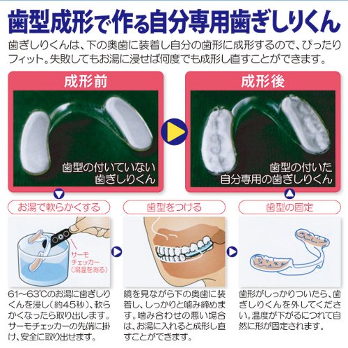 The set includes / body, simple case, thermo-checker adaptation Size / Free Size (unisex) Material / Body: EVA, Esutorama, simple case: the PET dental technician 30 years of Nobutaka Yoshida teacher was developed! By shaping the tooth, perfect teeth grinding prevention mouthpiece of fit! Back teeth protective equipment to prevent the unpleasant sound by simply worn during sleep, the damage to the teeth! Only fitted to the back teeth of the bottom, it protects your precious teeth from bruxism and clenching.