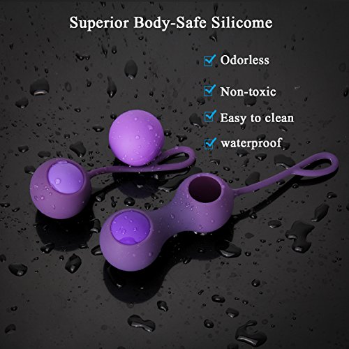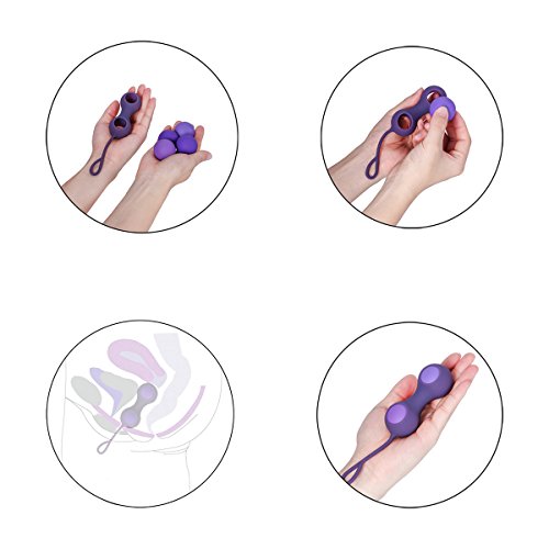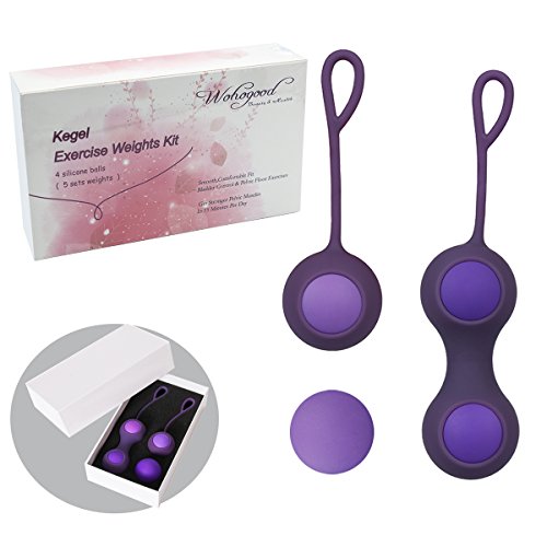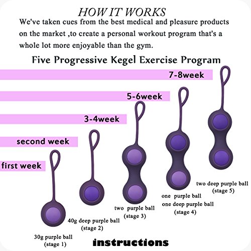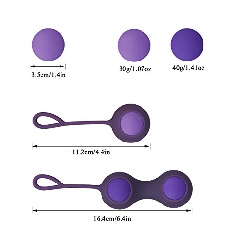 Specifications: Material:Silicone Color: Purple Color Waterproof: 100% Product Pack: One kit contains 5 weights kit Packing Included: 2x deep purple ball 2x purple ball 1x Single ring belt 1x Double ring belt 1x Instruction 1x Thanks card Doctor Recommended: Recommended by physical therapists solution for incontinence weak pelvic floor muscles: Tracy's Dog Weights kit Bladder Control Device.A luxury silicone set presented in beautiful gift packaging. A three-step system, each step has a differently shaped and weighted exerciser to help to tone your pelvic floor, which may strengthen pelvic floor muscles improving bladder control; post-pregnancy recover and overall better pelvic health. Exercise System Five progressive kegel exercis weighted kit to guide you through a full workout regime. Work your way from beginner to advanced level kegel exercises with one, easy-to-use kit.Exercise system easily integrates into your daily routine so you can regain your tightness confidence in just 30 minutes per day. Safety Information Consult your physician before attempting any exercise regimen, especially if you are pregnant or have recently given birth. Clean with warm water and antibacterial soap before and after use. Do not use during menstruations. If a lubricant is needed, use a water based lubricant only. Choking Hazard: Please keep out of the reach of children. 0