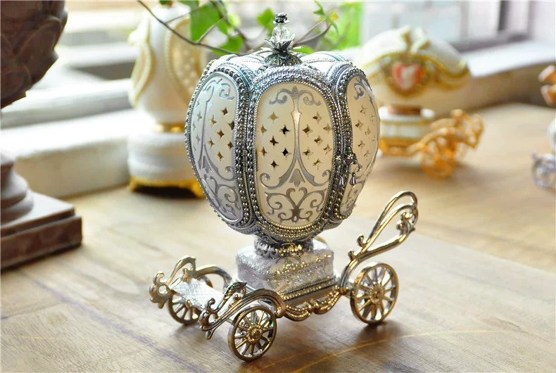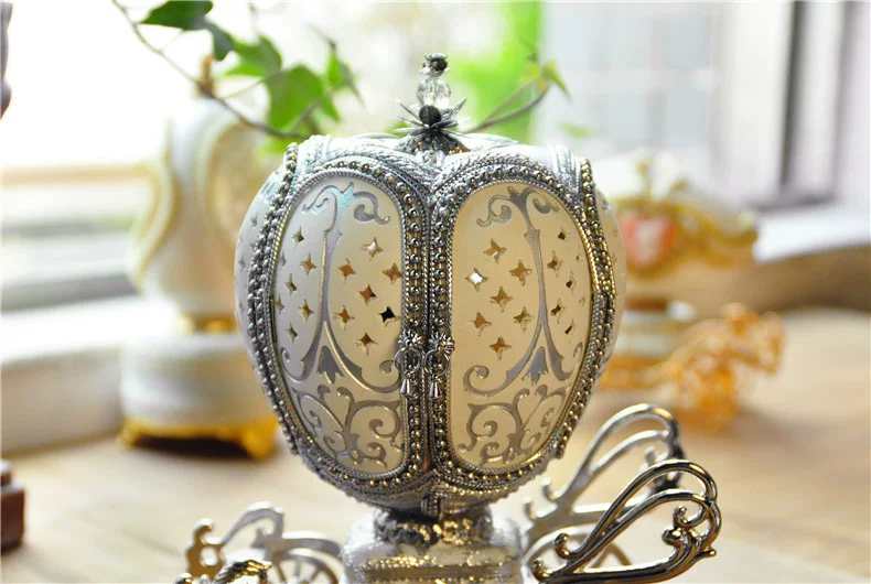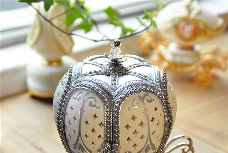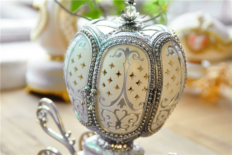 蛋体表面做雕花处理,旁边镂空有星星图案,闪亮的珠串整齐排列.