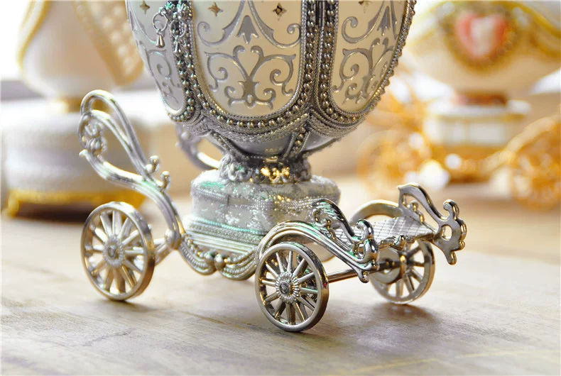底部裝有音樂盒.金屬馬車可以滾動自如. 是一件可以珍藏一生的礼物.
