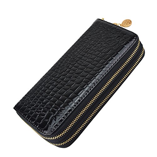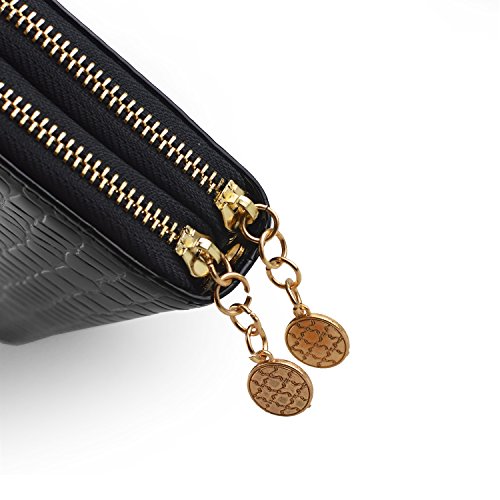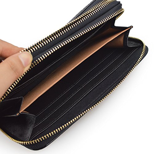 -. Feature : Interior: 8 Card Slots, 2 Zipper Pockets with 2 rooms, 2 Concealed Compartments, 1 Single Pocket / Size: Length 7.5in x Width 3.7in x Thickness 1.6in / Material: Synthetic Leather / Design: Fashion Wallet, Long Purse, Elegant Card Holder / Occasion: Casual, good for girls, ladies, women and others
