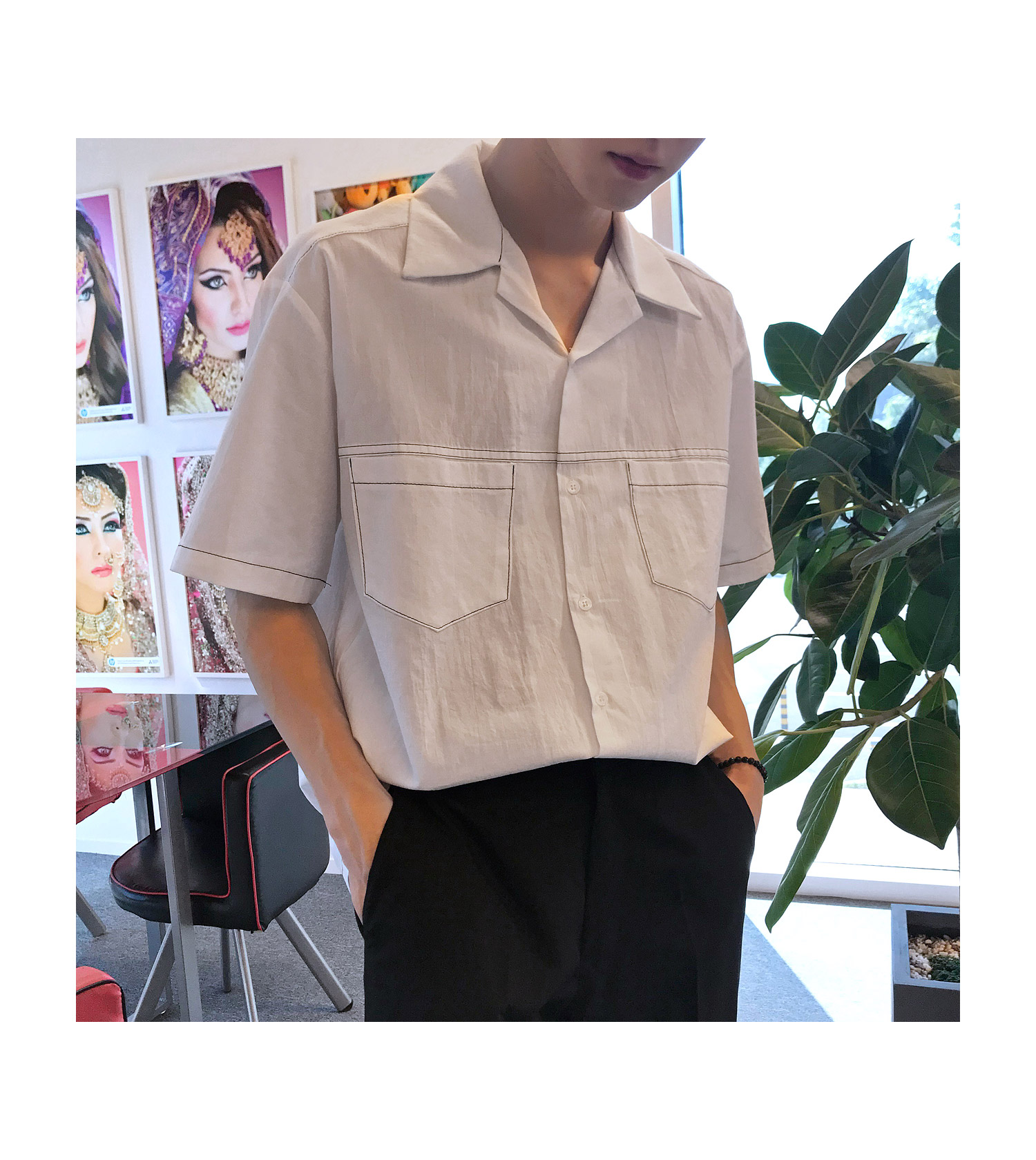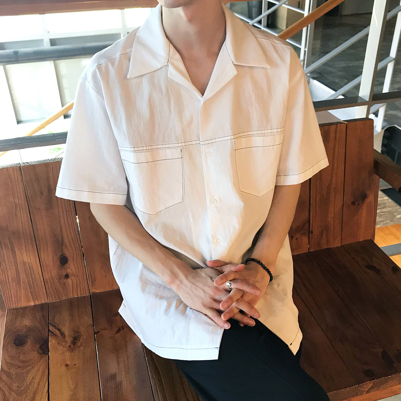 베이직한 무드의 스티치 반팔 셔츠 입니다.FABRIC INFO