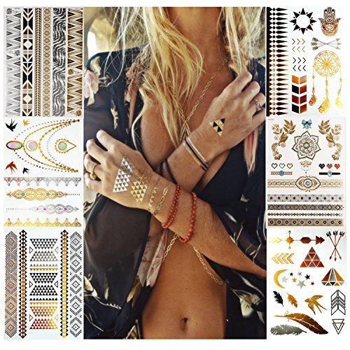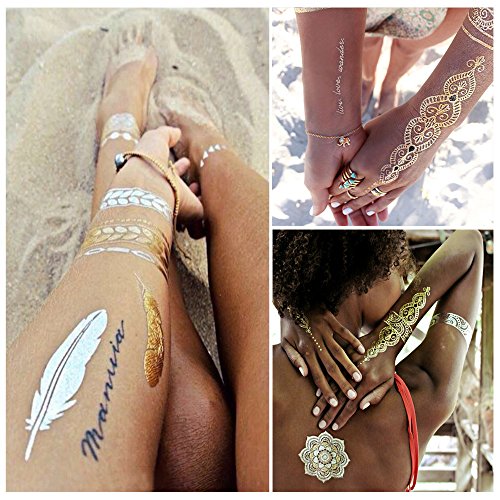 ★WATERPROOF & LONG LASTING- The metallic temporaray tattoos are totally waterproof, which is perferct for beach, pool, party and other summer activities! Once correctly applied, the tattoos can last more than a week