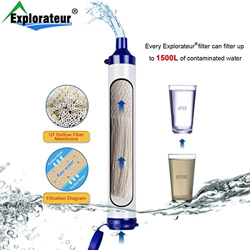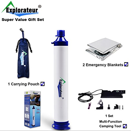 Explorateur Convenient Portable Personal Outdoor Water Filter, Filtration Straw Tube for Camping, Traveling, Hiking, Emergency Survival, Expeditionary Kit/Equipment with Blankets
