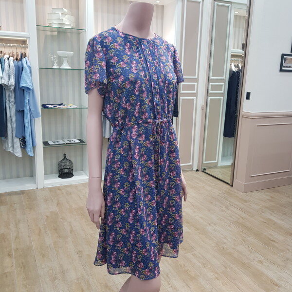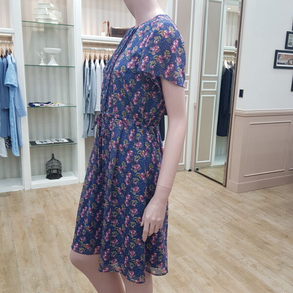 플라워프린트쉬폰원피스~허리 밴딩으로 스트링 묶는 스타일55기준 총장94cm