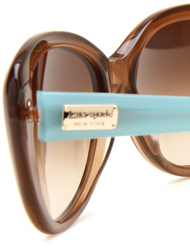 Kate Spade Sunglasses style Angelique/S is a stylish, plastic cat-eye frame. The Rx-able Angelique/S features a saddle nose bridge and plastic temple tips for extra comfort. The Kate Spade logo is engraved in the metal temple. Kate Spade Sunglasses have lightweight plastic lenses that always ensure 100% UV protection. .