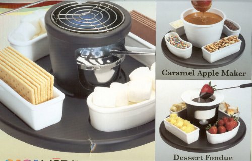 Fondue Dessert Smores Maker: Casa Moda 3 Sets in 1 Box ~ Dessert Center ~ S'mores, Chocolate Fondue, Caramel Apples & More ~ Lazy Susan Style
