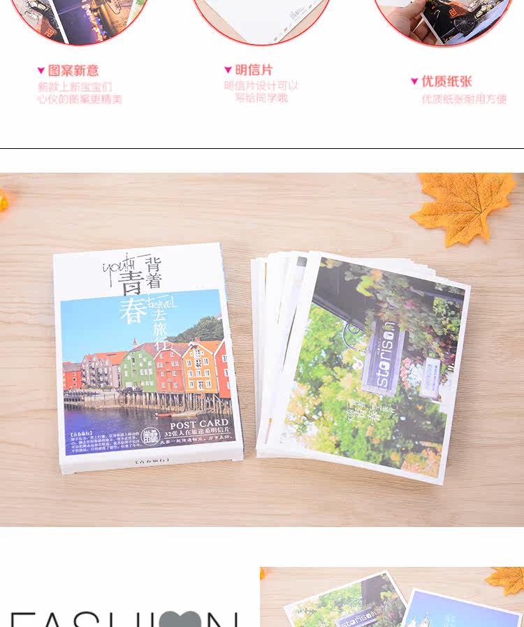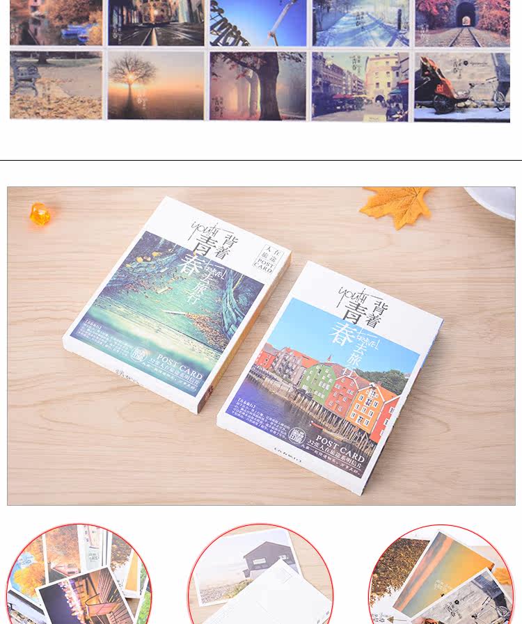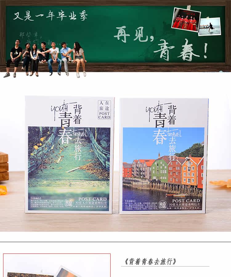 32张盒装背着青春去旅行明信片人在旅途治愈系列可邮寄卡片