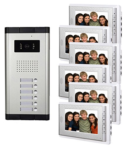This Video Intercom Door Phone System includes 1 outdoor color camera with 6 call buttons,7 inch color LCD screen 6 PCS,Support IR night vision.