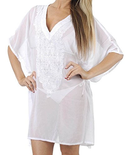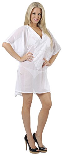 -. Title : La Leela SHEER LIGHTWEIGHT Beach Dress Embroidered Bikini CHIFFON Coverup White
