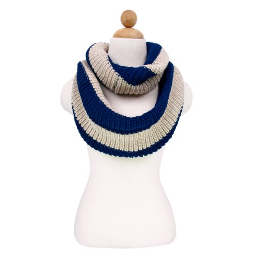 Binding : Apparel Product Description This soft knitted infinity loop scarf is a great addition to your collection of fashion accessories. Trendy and classic 2-tone striped knit. High quality versatile, lightweight warm. Great for cold weather and no bulky feel. Brings you simple effortless design along with warmth comfort. This scarf makes an excellent gift for any occasion. TrendsBlue® is a registered trademark. 0