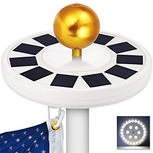 Display Your Pride in all its dazzling glory for years to come with the brightest, long-lasting and easy-to-use solar flagpole light! Apply to most standard 15 - 25 ft flag poles with a 1/2"-thick rod at top.