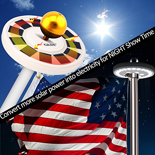 GRDE Solar Flag Pole light 30 LED Flagpole Downlight Lighting Night Light for 15 to 25 Ft Top