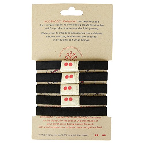 Kooshoo LILA Black Organic Hairties. Top Rated, Ouchless Hair Ties for Women and Men. Long Lasting, Made in USA Organic Cotton Ponytail Holders.