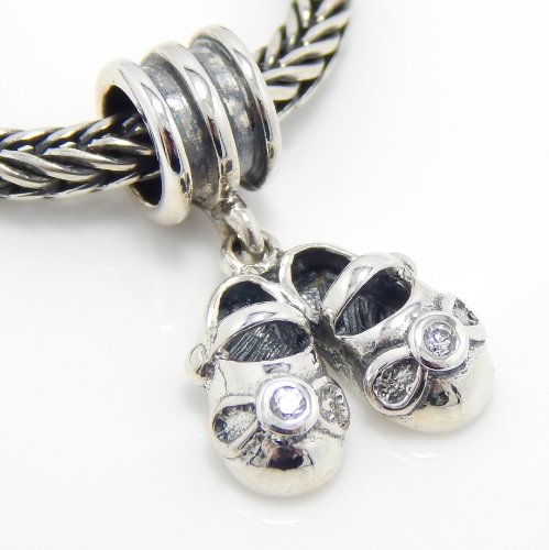 -. Title : Pro Jewelry .925 Sterling Silver Dangling "Baby Shoes w/ Cubic Zirconia" Charm Bead for Snake Chain Charm Bracelets 2591