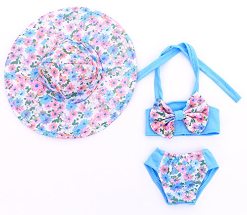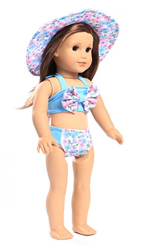 -. Feature : Blue flower pattern swimsuit with cap / Fits all American Girl 18inch dolls / Unique designs, high quality Material / Honey Doll is closet for your American girl dolls