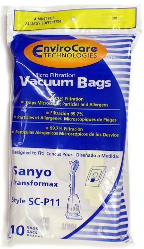 -. Feature : Fits: Panasonic, Kenmore, LG slimax Vacuum Cleaners / 9 Sanyo UP.R.Ight Pu-1 with closure Vacuum Bags / Fits original manufacture part numbers: SC-PU110, SC-PU1, TVU55, X5 / Dimensions: Dimensions: Dimensions: 15 ¾" x 6 ¾" with an approximate 1 ¾" diameter opening / EnviroCare Premium aftermarket Part # 160-9
