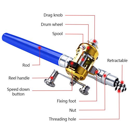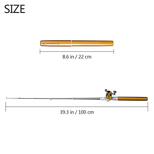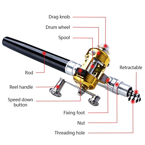 -. Title : 38Inch Mini Telescopic Pen Fishing Rod Reel Combos for Kids,Aluminum Alloy Portable Pocket Fishing Pole Kit,Lightweight & Compact