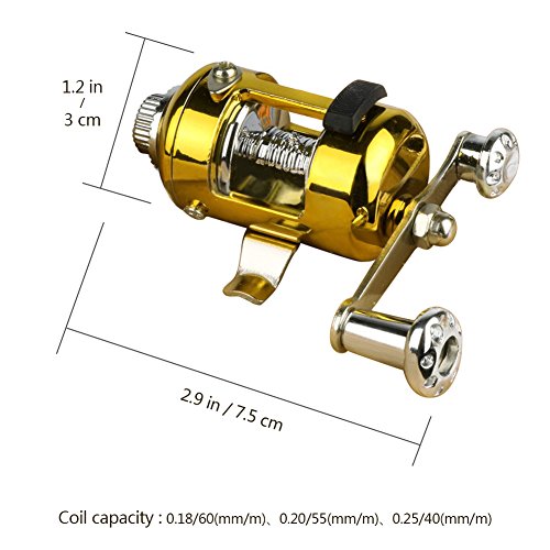 -. Feature : Pocket size.Fits Pocket,Glove Box,Briefcase,Backpack. / Right/Left Interchangeable Handle!Solid Construction,Smooth Casting! / Aluminum alloy reel includes forward and reverse ratchet stop and drag control. / Extended Length: Approx 38 inch,suitable for fishing from a boat, a dam or on ice. / Perfect for fishing enthusiast or collectors as a Birthday,Chirstams Day,Fathers' Day Gifts.
