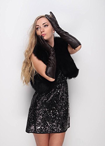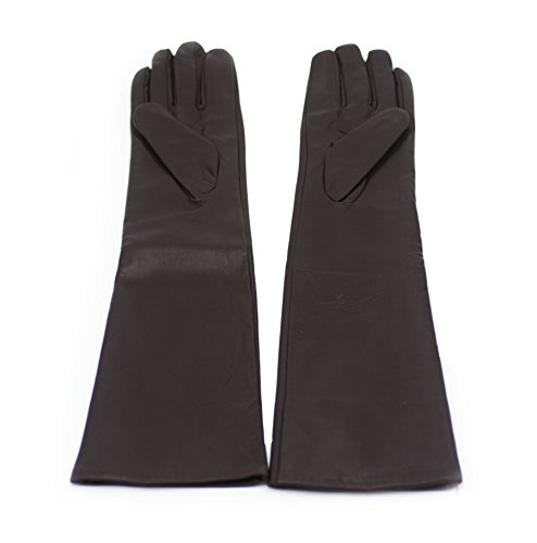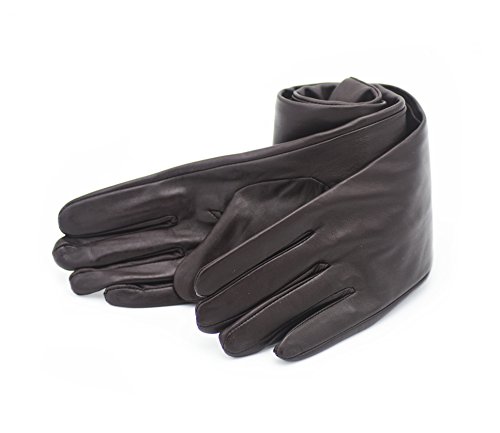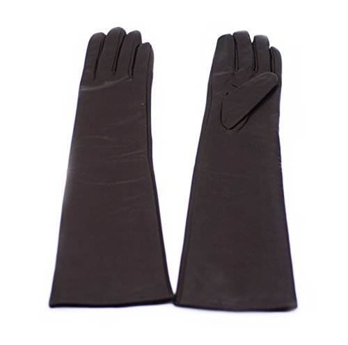Binding : Apparel Product Description Size chart : (There are different size standard in the world. Please measure your palm perimeter tightly) Item name: 46cm(18") plain evening elbow gloves Material: Top genuine sheep leather Lining: Fleece Color: dark brown Size:S M L XL Our leather gloves are slim fit design. Maybe you feel a little tight at first time. But leather can stretch a little. We suggest you choose a larger size if you are between size. Notice: 1. The actual color may vary slightly different from the online image due to monitor color settings. 2. Please refer to our size chart picture to find the appropriate pair of gloves. And please allow slight measurement deviation for the data.? 3. These gloves are one-size-fits-all and stretch to accommodate all sizes; however, they may not be suitable for super-large hands, please understand it. In case you look for a comfortable fit from the beginning, we suggest you to go up for one size.? 4.When new the leather has a characteristic odor. This is normal and the odor will fade away after a few days. Return policy We accept return or exchange in 30 days. Please contact me by message if you want to return it in advance. Please believe I will try my best to solve the problem. 0