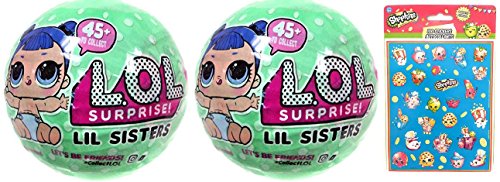 Set of 2 LOL Surprise Dolls Series 2 - Her Lil Sisters Wave 2 Balls (Plus 100 Shopkins Stickers!)