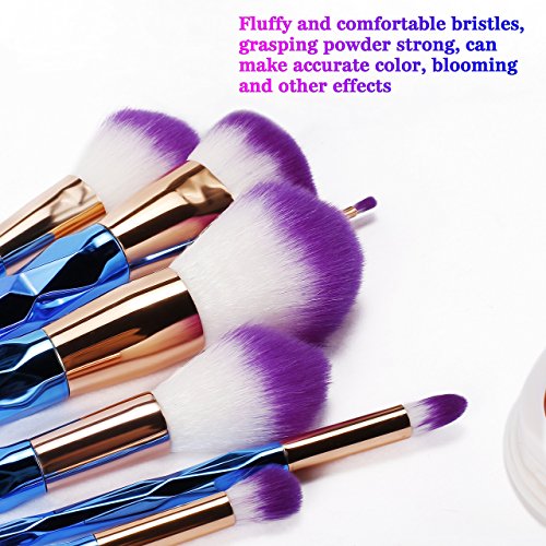 PRETTY HANDLE DESIGN: Beautiful Colored brushes with gradient screw lines brush pole, Handles are unicorn horn twist design with a blue to purple to pink chrome finish.easy to grip ,let you feel 100% comfortable.