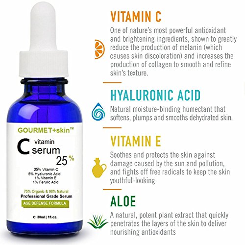25% PERFECTLY PORTIONED HIGHLY CONCENTRATED VITAMIN C SERUM - This serum is comprised of 25% pure organic Vitamin C, high portion which is not extremely high to be safe, and most effective formula available in today's market. Contains more active Vitamin C than other leading brands. (Compares to common 20% Vitamin C used).