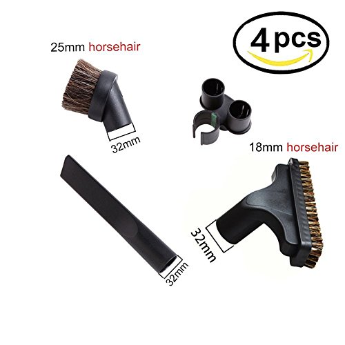 -. Feature : All in one kit - Universal replacement attachment brush kit accessories; suitable for standard 32mm diameter size / Economical and practical vacuum cleaner accessory set / Can Work With The Following Brands: Bissell, Dirt Devil, Dyson, Electrolux, Hoover, Kenmore, Miele, Oreck, Panasonic, Shark, etc. / 1 x horsehair bristles round brush; for cleaning and dusting tables and counter tops, air and heating vents, mini and vertical blinds / 1 x Wet or dry vacuum crevices tool for cleaning tight spaces, utility nozzle with plastic brush, the brush can be removed, for floor cleaning