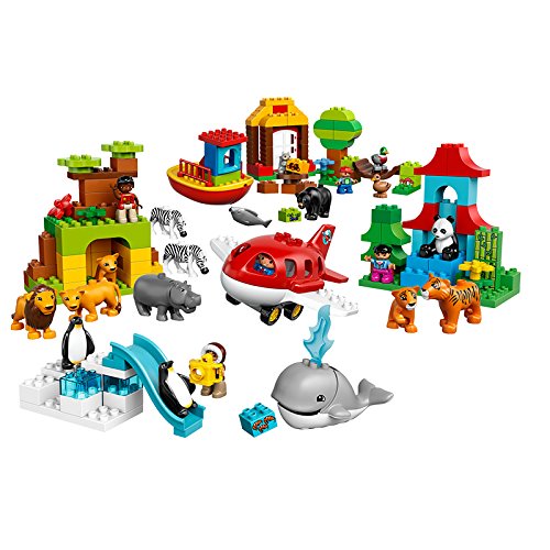 -. Feature : Enthält 5 LEGO® DUPLO® Figuren sowie 17 Tiere aus aller Welt! / Enthält einen baubaren Tempel, eine Savannenkulisse, eine Waldkulisse, eine Antarktis-Kulisse sowie ein baubares Flugzeug und ein baubares Boot. / In dem baubaren Tempel gibt es einen Tiger mit Tigerjungem und einen Panda sowie als Bambus verzierte Steine. / Die Savannenkulisse enthält eine baubare Höhle mit Savannenbaum, 2 Löwen mit Löwenjungem, 2 Zebras sowie ein Flusspferd.