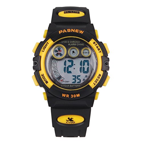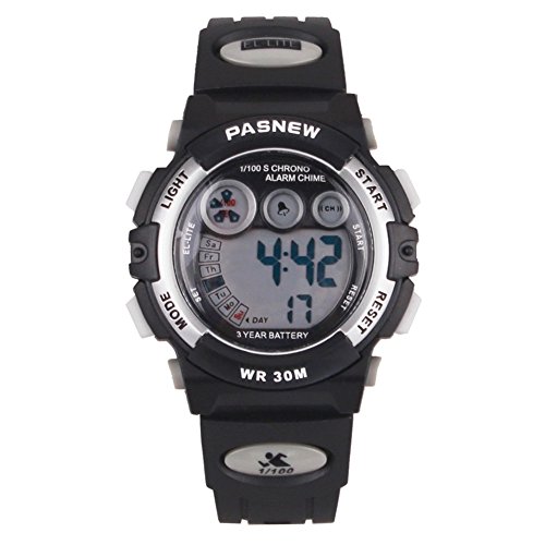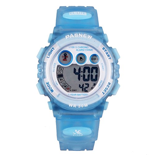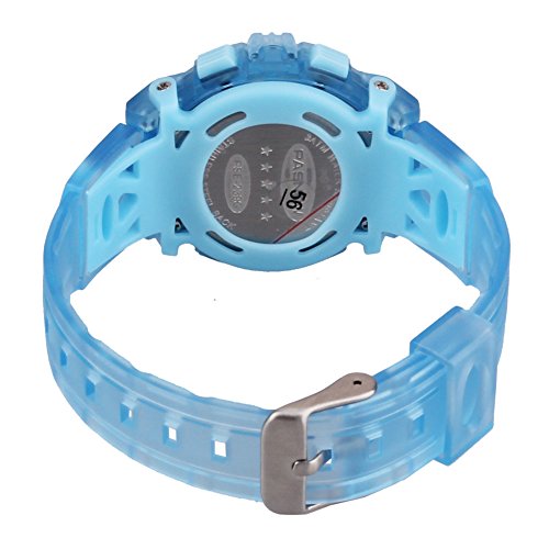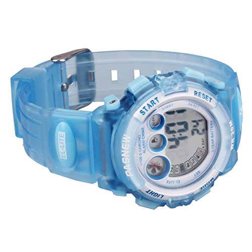 -. Feature : Material--Plastic watch case with thicken glass mirror,the watch is lightweight and good anti-shock performance. Adjustable PU wristband and unique surround type watch,specially design for kids,thoughtful and comfortable / Function--Can act as a stopwatch and alarm clock,more powerful and practical than simple wristwatch.Backlight design allows you clearly see the numbers on the display screen in any environment / High-quality movement--Plastic watch case with thicken glass mirror,the watch is lightweight and good anti-shock performance / Waterproof--Good workmanship,30m waterproof design,without taking down the watch frequently,more convenient / Occasion--a great gift for children and it can use for any occasions.