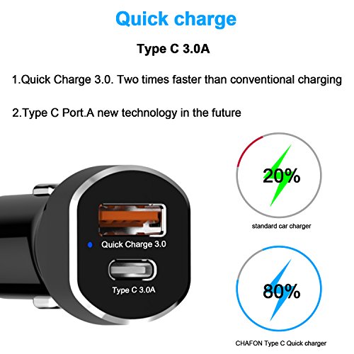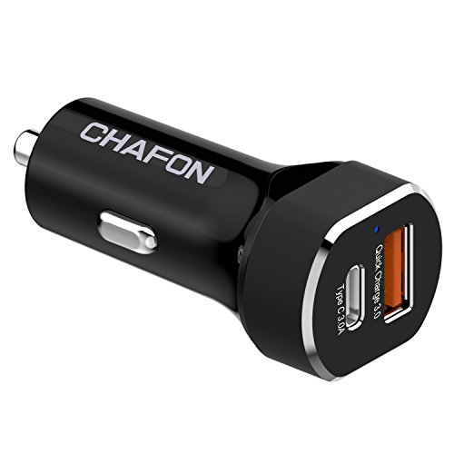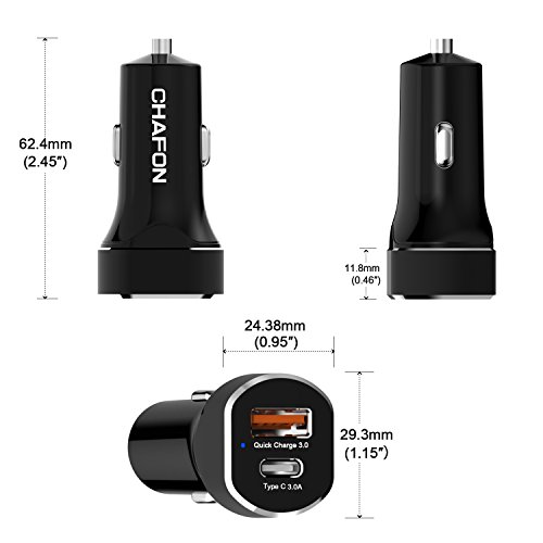USB Type C Car Charger,Chafon Dual Port 5V 3A 33W with Quick Charge 3.0 Technology USB A Connecor and Type C Port for Smartphones and Tablets-Black