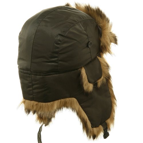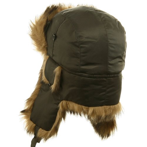 -. Feature : Made of 100% nylon. / XL, XXL, and XXXL are available. / Crown measures 4 inches deep,fully satin lined. / Bill measures 3 inches high, attached on front crown. / Ear flaps measure 7 inches long with chin strap snap closure.