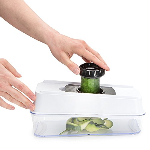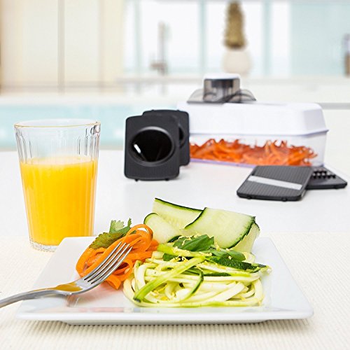 5-in-1 SPIRALIZER AND MANDOLIN offers all the functionality of multiple appliances with 5 interchangeable blades. Free-up space on your kitchen countertop and use just 1 easy kitchen accessory.