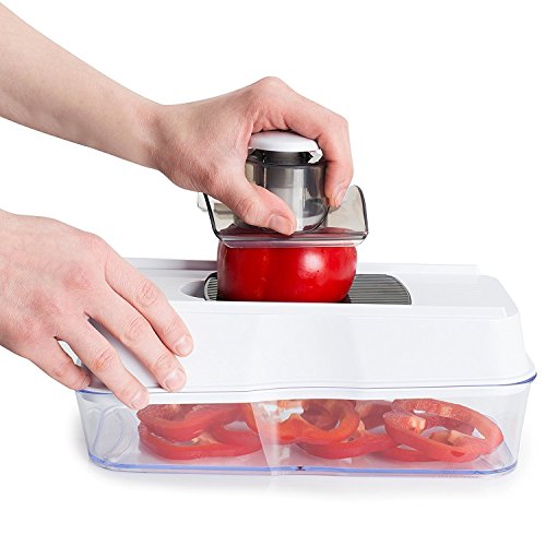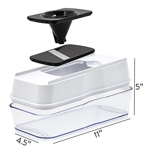 1-QUART CATCH TRAY makes meal prep mess-free and easy, unlike competitors’ models. Our combination mandolin / slicer includes its own lid so you can store prepped foods for salads and recipes.
