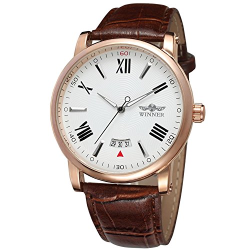 -. Title : GuTe出品 腕時計 メンズ 自動巻き カレンダー 日付 革バンド ローマ数字 シンプル ビッグ 機械式 ホワイト