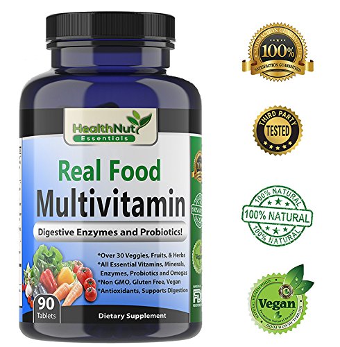 -. Feature : MADE WITH REAL FOOD in the USA - Food based ingredients for best absorption & nutrition / VEGAN - Natural, Non-GMO Multivitamin loaded with real food suitable for vegetarians / 3RD PARTY TESTED - Every batch is 3rd party tested & verified - made in the USA / Non-GMO FOOD BASED BLEND - Includes Fruits, Veggies, Mushrooms, Herbs, Citrus, Omegas and Greens / PROBIOTICS & DIGESTIVE ENZYMES - contains probiotics & digestive enzymes for digestive health