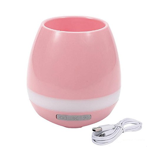 weget Music Flower pot Smart Multi-color LED Light Bluetooth Wireless Speaker Touch Piano Music Playing Rechargeable for Office Home Decor (whitout Plants) (pink)