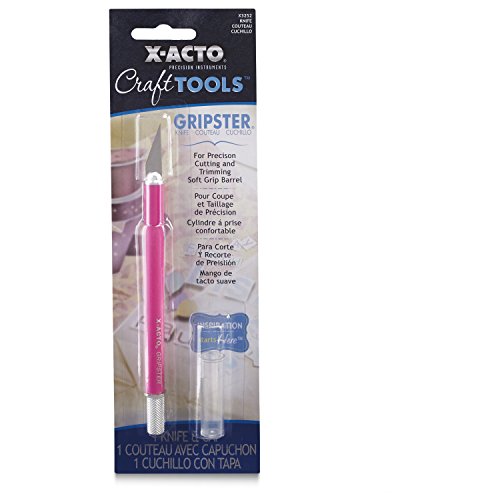 X-ACTO knives are the preferred cutting tool for a wide variety of professionals and hobbyists alike. Designers and artists love the X-ACTO knife's ability to produce careful and meticulous cuts with consistency, while engineers praise the knife's durable design and reliability. X-ACTO knives can make precise cuts through a variety of different craft materials including all grades of paper, mat board, foam board, delicate fabrics, sheet metal, and plastic. The X-ACTO Designer Series Gripster Craft Knife offers superior precision cutting of most lightweight materials. This Gripster knife is perfect for craft projects, scrapbooking, picture cropping and more. The comfort grip along with the lightweight aluminum frame makes our Gripster knife a great addition to your craft or scrapbooking tote. Made with a rear blade release and safety cap, this crafting knife was designed with safety in mind. The original X-ACTO knife has been praised for more than 50 years as the standard for precision. Attaining this level of precision, accuracy and reliability starts with supreme quality craftsmanship. All X-ACTO knives are built with a carbon steel blade for a reliable cut every time. Additionally, they are crafted with a sleek design that fits comfortably in the hand, allowing you to continue making the precision cuts needed to finish the job, no matter how long it takes.Feature